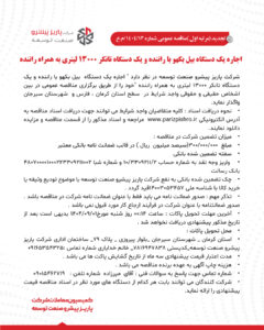 . هزینه چاپ آگهی به عهده برنده مناقصه میباشد.