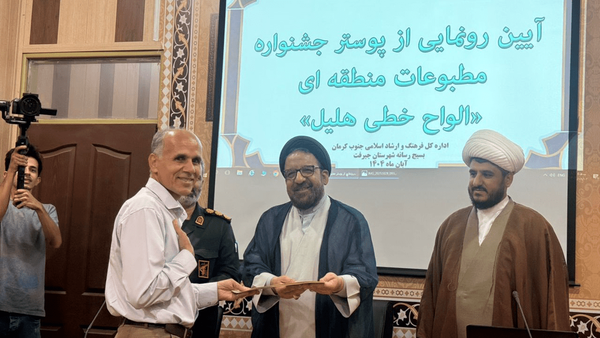 پوستر نخستین جشنواره منطقهای مطبوعات با عنوان «الواح خطی هلیل» با هدف تقویت نقش رسانهها در جهاد تبیین و عدالت فرهنگی، در آیینی رسمی با حضور مسئولان فرهنگی، اصحاب رسانه و خبرنگاران در جیرفت رونمایی شد.