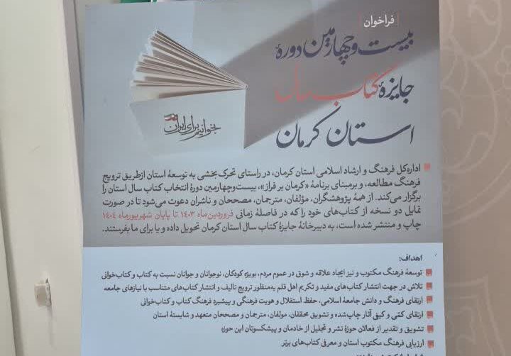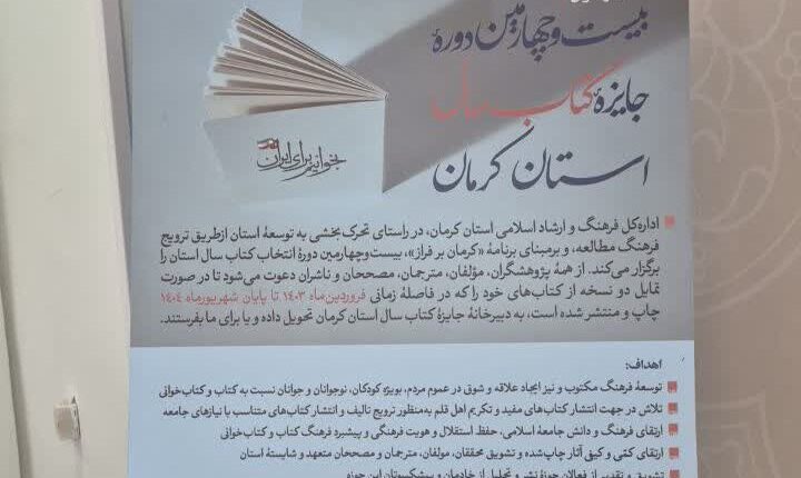 از پوستر فراخوان بیست و چهارمین جایزه کتاب سال استان کرمان رونمایی شد