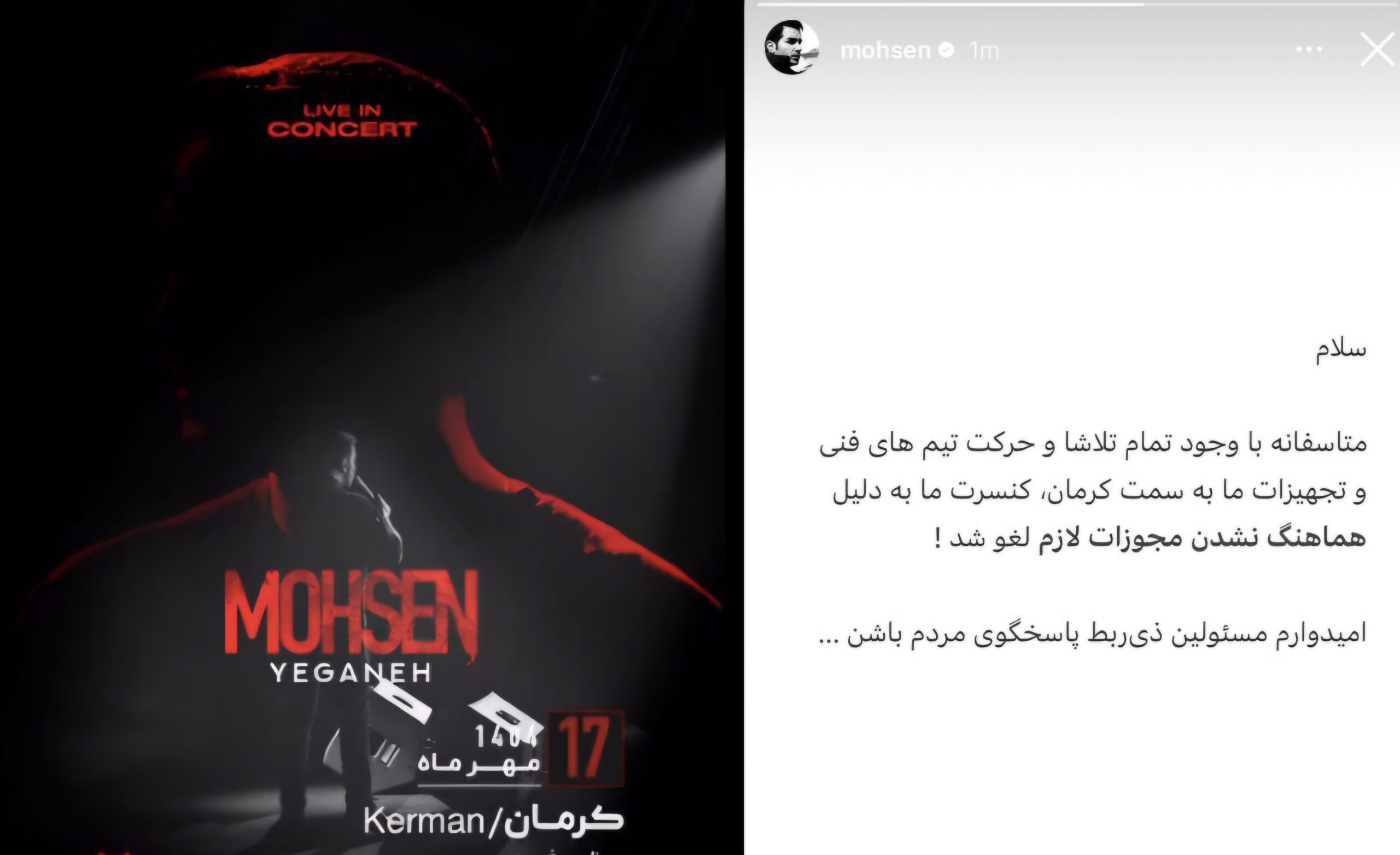 مدیرکل فرهنگ و ارشاد اسلامی کرمان درباره کنسرت محسن یگانه توضیح داد؛