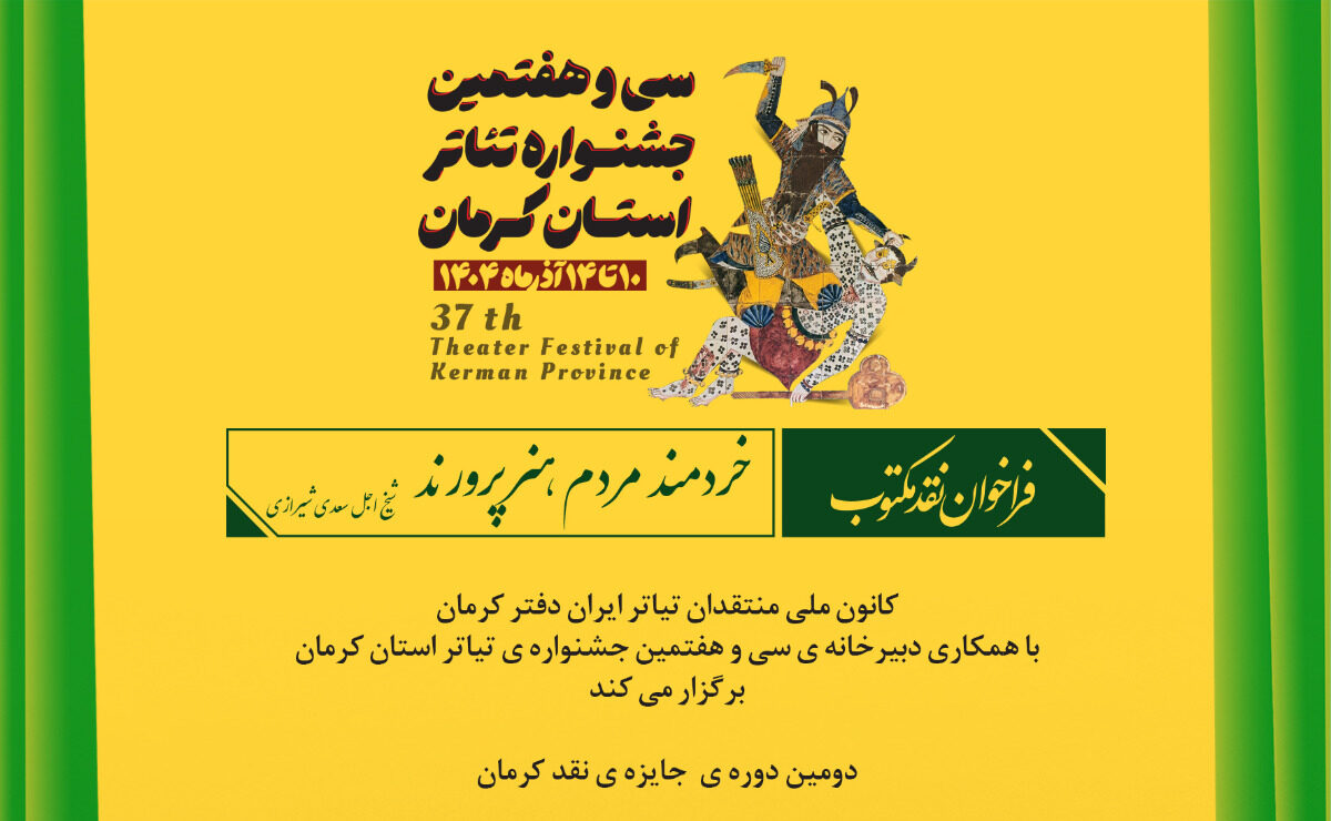کانون ملی منتقدان تئاتر ایران، دفتر کرمان با همکاری دبیرخانه سی‌وهفتمین جشنواره تئاتر استان کرمان، فراخوان دومین دوره «جایزه نقد کرمان» را منتشر کرد؛ فراخوانی که با هدف ترویج فرهنگ نقد، شناسایی استعدادهای نو و ارتقای سطح تحلیل آثار نمایشی در استان برگزار می‌شود.