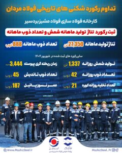 این رکورد بزرگ، حاصل همدلی، تخصص و تلاش بی‌وقفه فرزندان این دیار است؛ یادگاری که همچون مشعلی فروزان، راه آینده درخشان فولاد مشیز بردسیر را روشن می‌سازد.