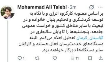 رئیس اداره اطلاعرسانی و روابطعمومی اداره کل آموزشوپرورش استان کرمان با اشاره به تعطیل اعلامشدن مدارس ابتدایی شهر کرمان، همچنین شهرستانهای زرند، کوهبنان، راور و انار طی شب گذشته… ادامه مطلب ...