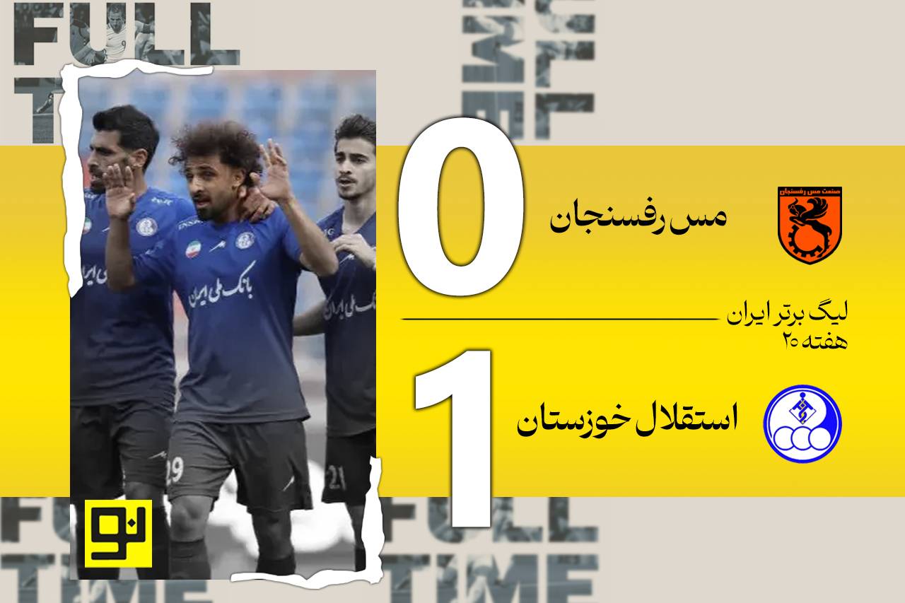 بهگزارش کرماننو ؛دیدار تیمهای مس رفسنجان و استقلال خوزستان از هفته بیستم لیگ برتر فوتبال ایران، در شرایطی کم هیجان اما فوقالعاده پراهمیت برگزار شد و با شکست یک بر صفر نماینده کرمان به پایان رسید.