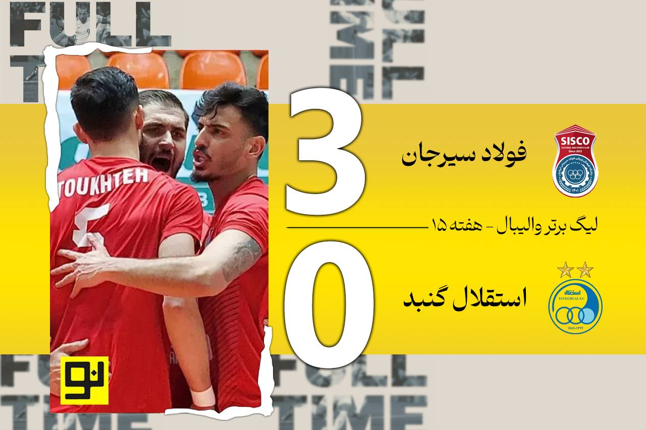 در دومین دیدار این هفته که از ساعت ۱۵:۳۰ در خانه والیبال تهران آغاز شد، تیم‌های فولاد سیرجان ایرانیان و استقلال گنبد به مصاف هم رفتند. شاگردان بهروز عطایی با ارائه نمایشی برتر، موفق شدند در سه ست متوالی با نتایج ۲۵ بر ۱۶، ۲۵ بر ۱۵ و ۲۵ بر ۲۳ نماینده گنبد را شکست دهند و با ثبت سیزدهمین پیروزی فصل، جایگاه خود را در صدر جدول تثبیت کنند.